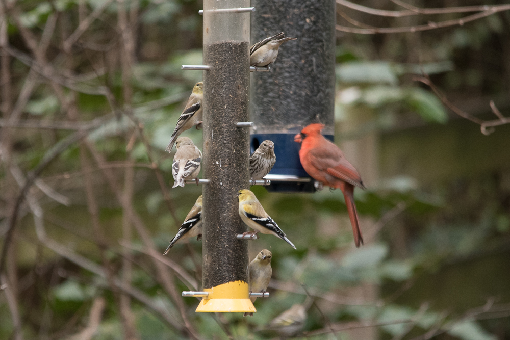 It’s been warmer today, but the bird feeders were about as busy as they get. Lots of House Finches, Goldfinches, and Northern Cardinals. Also present were Eastern Bluebirds, Brown-headed Nuthatches, White-breasted Nuthatches and Brown Thrashers.