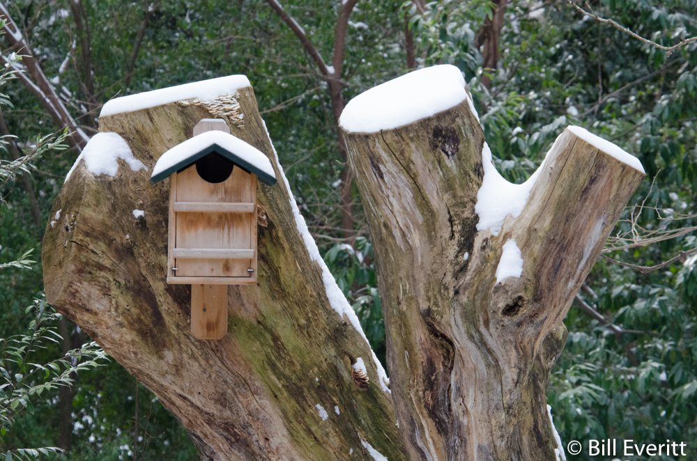 There are many forms of shelter that help wildlife. Birdhouses can provide protection from the wind and biting cold. One year we had a Downy Woodpecker roost each night in a bluebird house in the front yard.