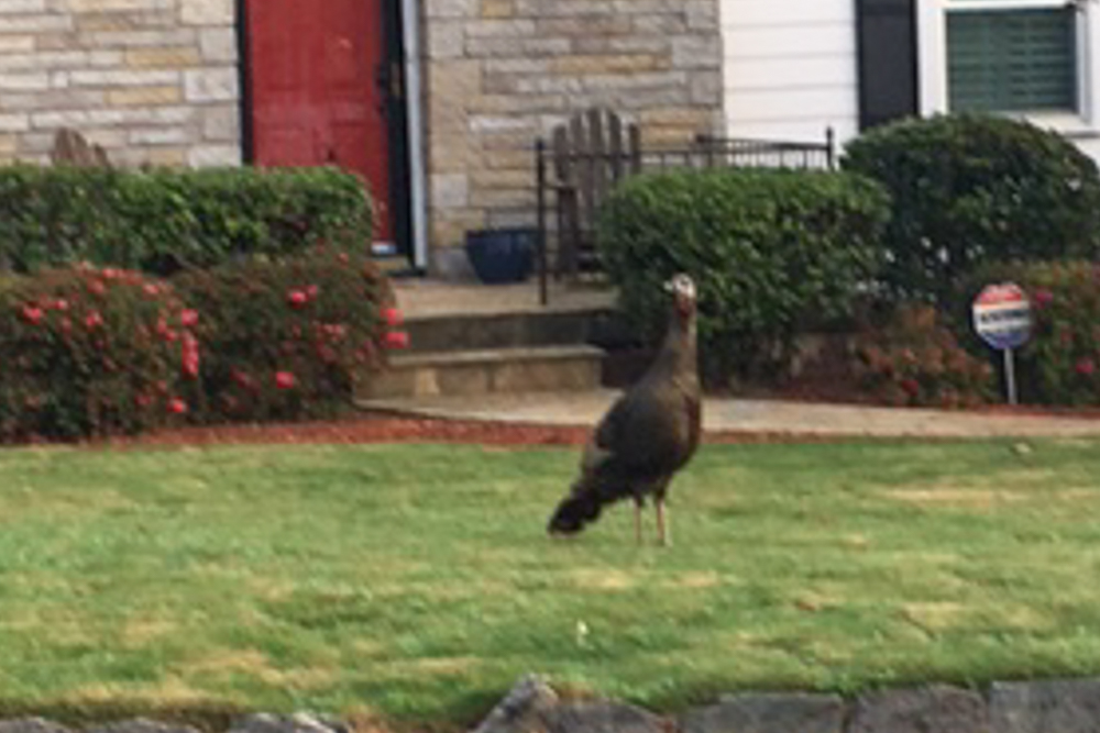 “A friend just reported seeing a Wild Turkey near the corner of Lindbergh, Cheshire Bridge and LaVista Rds. He said the bird was on the sidewalk in front of the old Varsity Jr. ( which is now a storage place) watching the cars go by.”