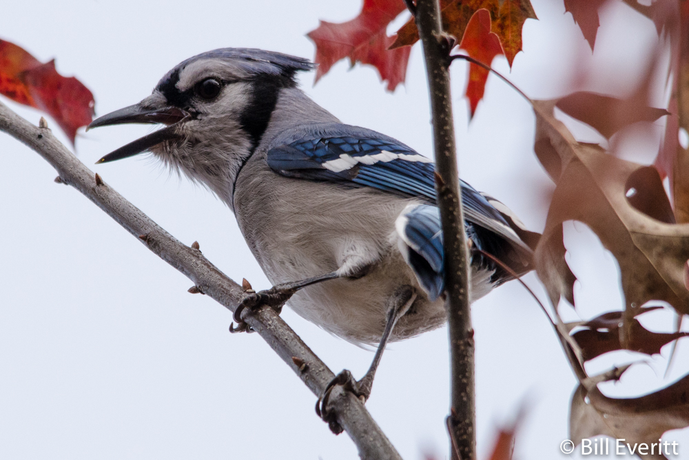 We’ve noticed that Blue Jays will also mimic the call of hawks, especially the call of the Red-shouldered Hawk. Nobody is quite sure why they do this. Maybe it’s a signal that hawks really are around or maybe it’s a deceptive ploy to run everybody else off. [3]