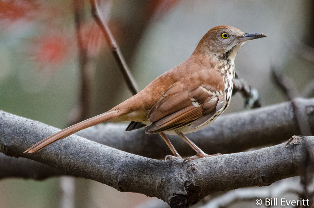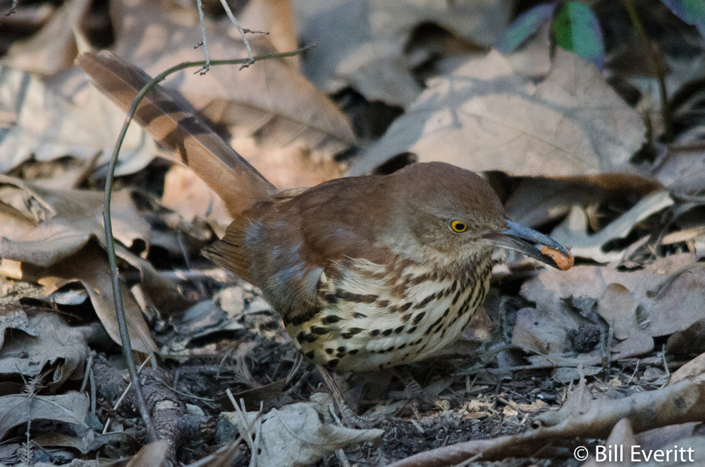 They are everywhere in our neighborhood, and what a treat they are. You’ll hear them singing in trees, in shrubs and from their perch on wires and poles. Sometimes they will sing for hours. Brown Thrashers, are mimics with extremely varied repertoires consisting of more than 1,100 song types, the largest repitoire of any bird.[1][2] They are in the family Mimidae, which also includes the New World catbirds and mockingbirds.[2] While mockingbirds tend to repeat phrases three or more times, Brown Thrashers typically sing phrases only twice before moving on.[1]