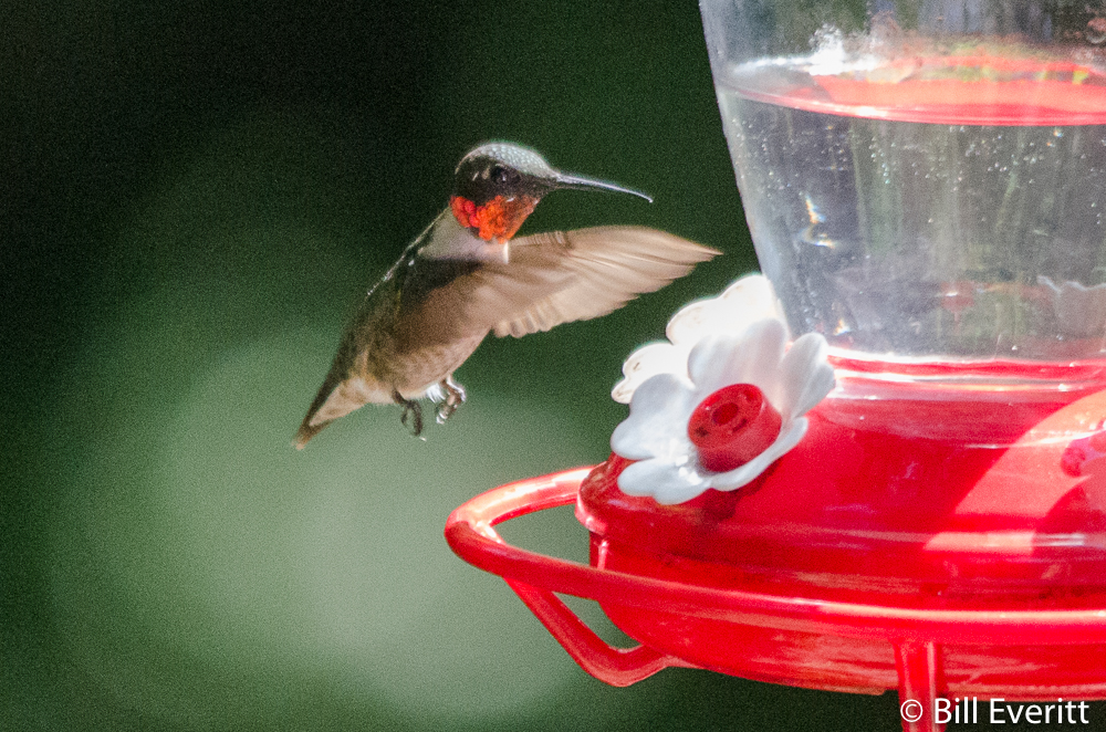 juvenile male Ruby-throated Hummingbird at a feeder in Peachtree Park on September 21, 2016