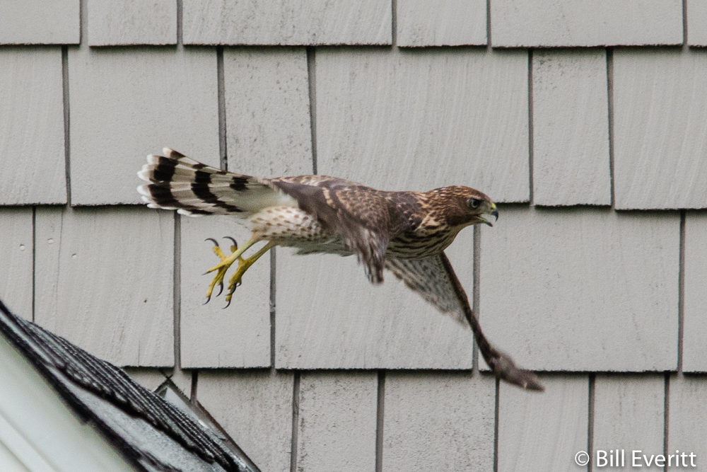 It was once thought that Cooper’s Hawks stayed away from towns and cities, but now they are fairly common. Some studies show that their numbers are actually higher in urban areas that in the forests. [3] These birds have adapted very well to urban life. One unfortunate thing is that they have learned that bird feeders are good hunting spots and will pick off songbirds when they come to feed. It’s nature.