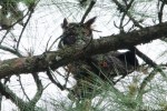 The neighbor was kind enough to let us come take pictures while their 5-year old son, an Owl buff, explained that it was a Great Horned Owl and told us all about what Great Horned Owls are like. He was spot on.