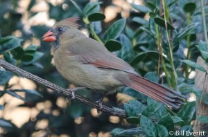 Listen to their song and you’ll probably say “oh, that’s what I’ve been hearing”. Not many North American songbirds sing, but the Northern Cardinal female does. [2]