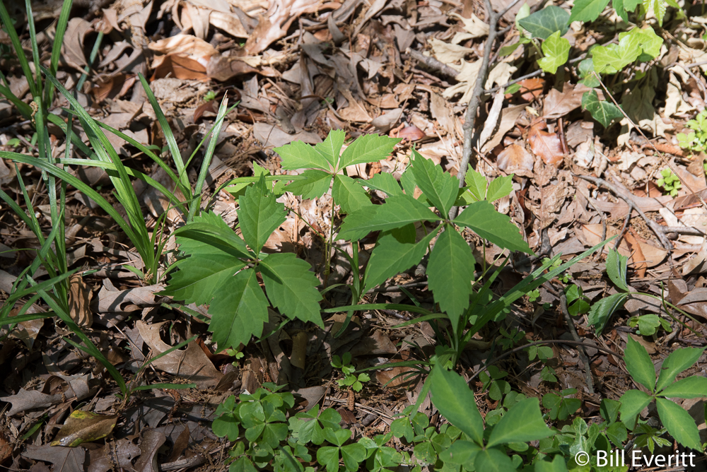 Virginia creeper (Parthenocissus quinquefolia) vines can look like poison ivy. The younger leaves can consist of three leaflets but have a few more serrations along the leaf edge, and the leaf surface is somewhat wrinkled. But the best way to be sure is to count the leaves, most Virginia creeper leaves have five leaflets.