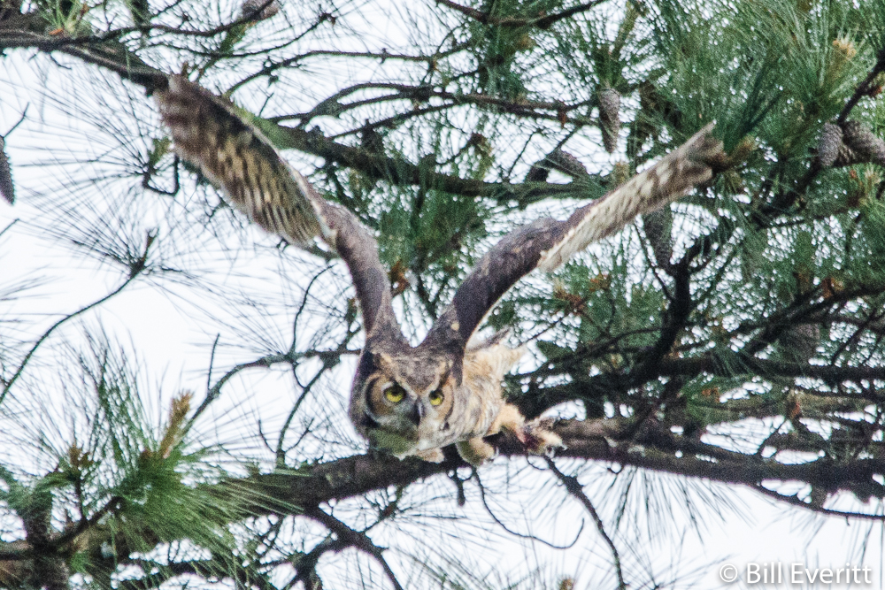 Cooper’s Hawks and owls look for prey from a perch and then move quickly to pounce on a prey animal (‘perch-and-pounce’).  During a chase, these birds are laser focused on their prey, and because their eyes are fixed to the front they often miss objects coming from the side.